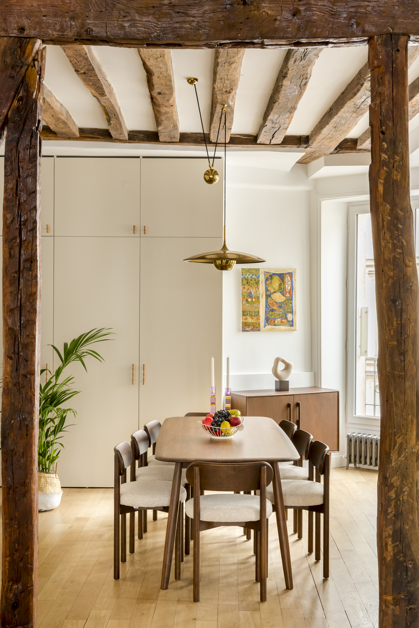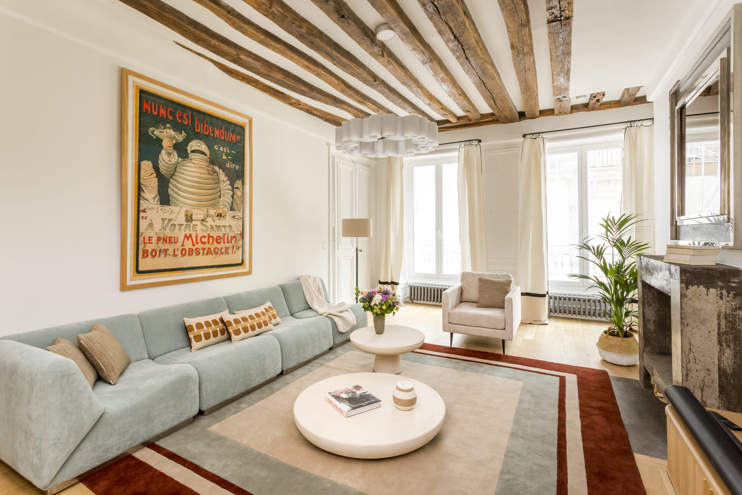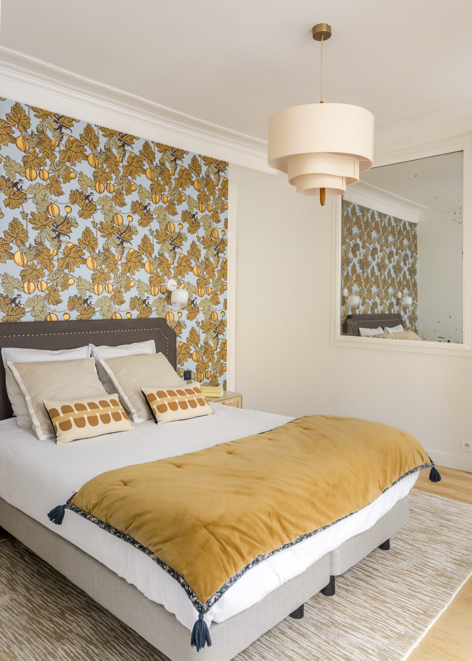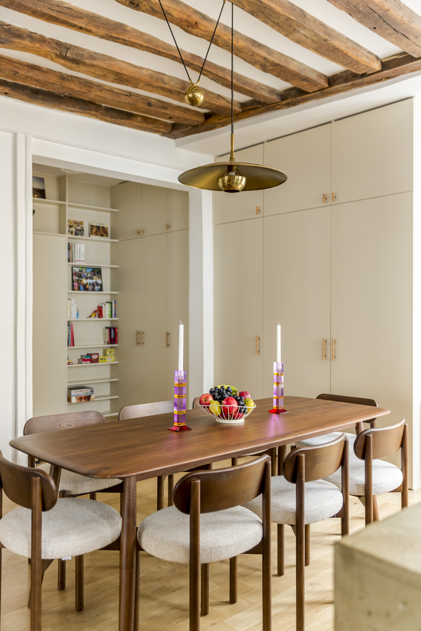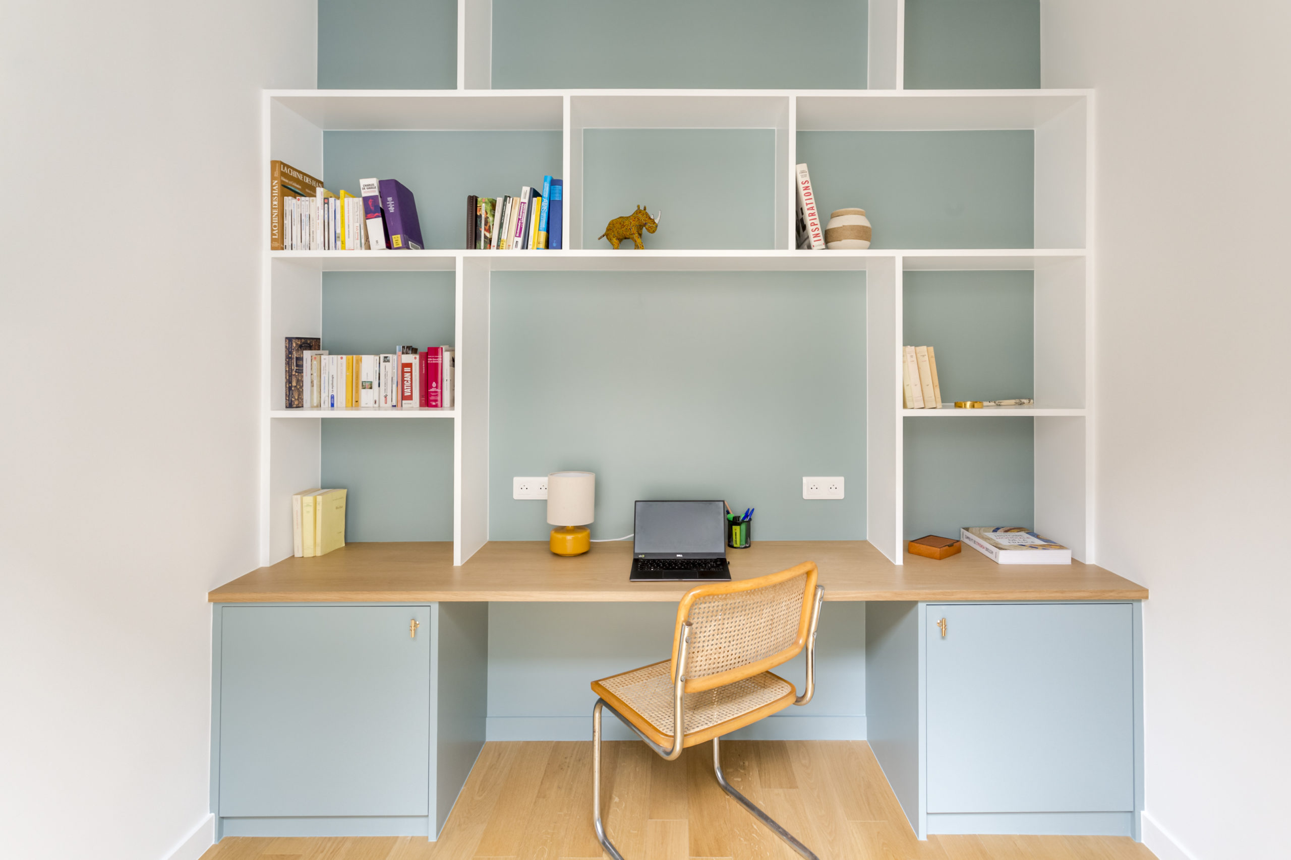 Le propriétaire a acheté ce bel écrin et voulait le meubler et lui donner une touche personnelle. Nous avons poncé les parquets, repeint tout l’appartement, réalisé un bureau-bibliothèque sur-mesure, posé du papier peint et meublé tout l’appartement. Un résultat à la fois élégant et intemporel avec de très belles références.