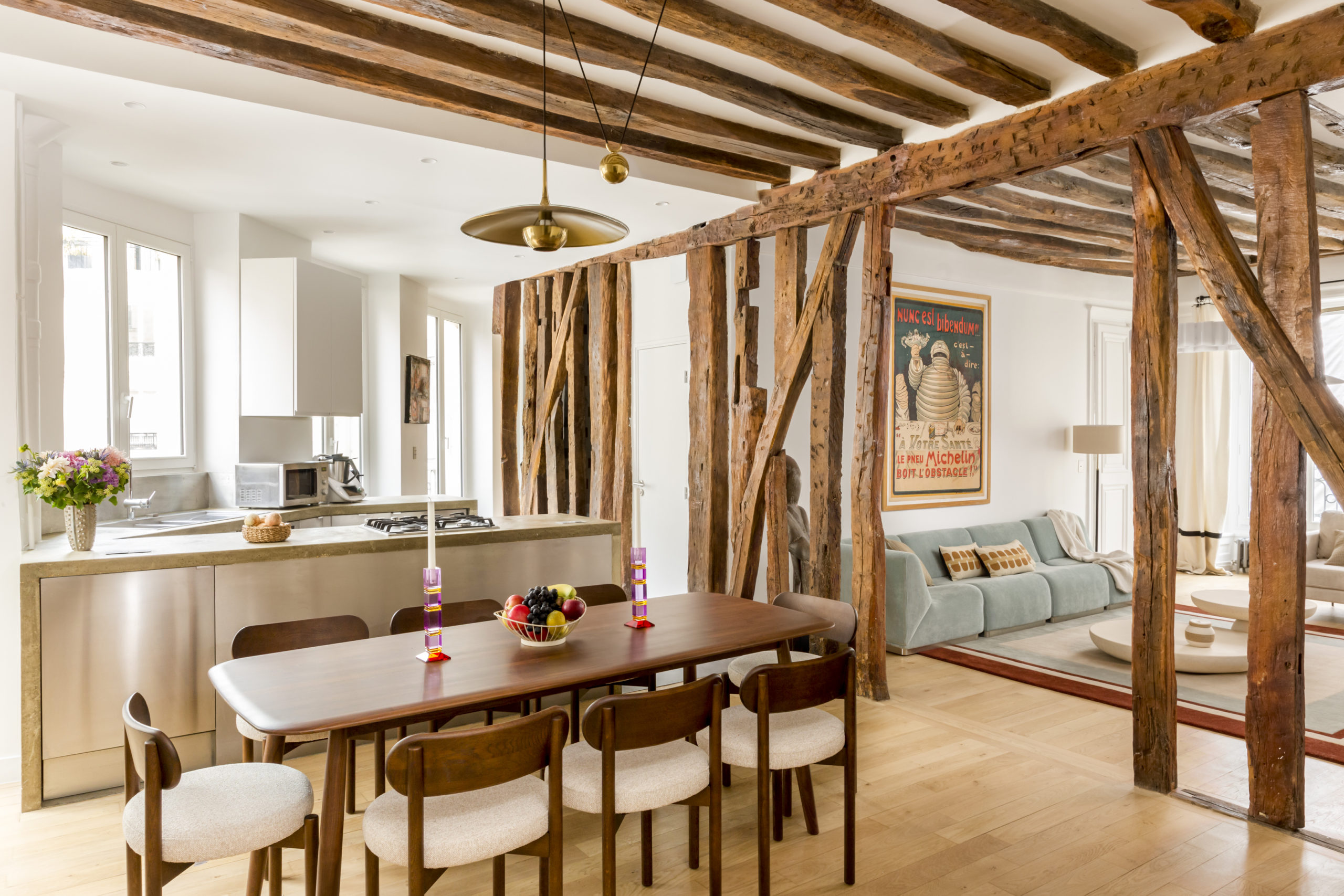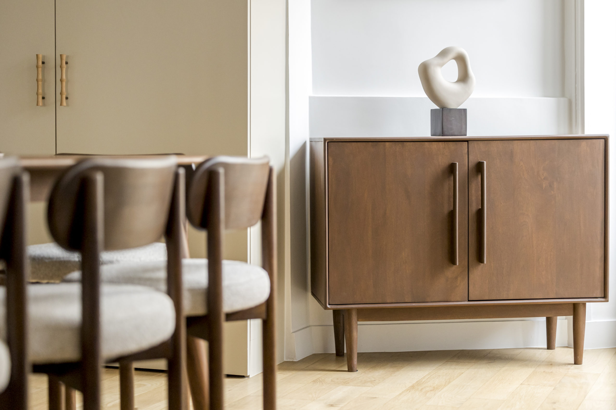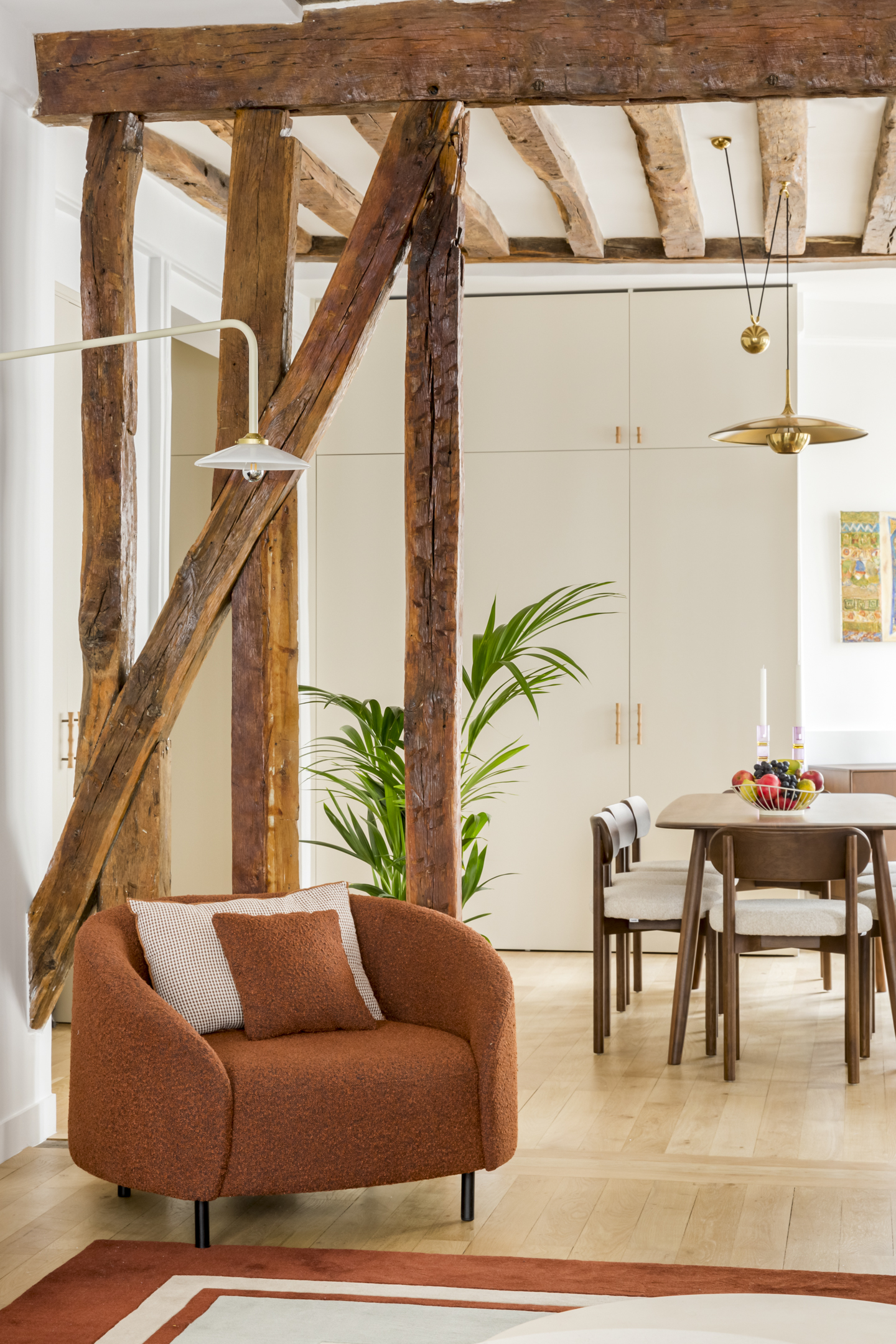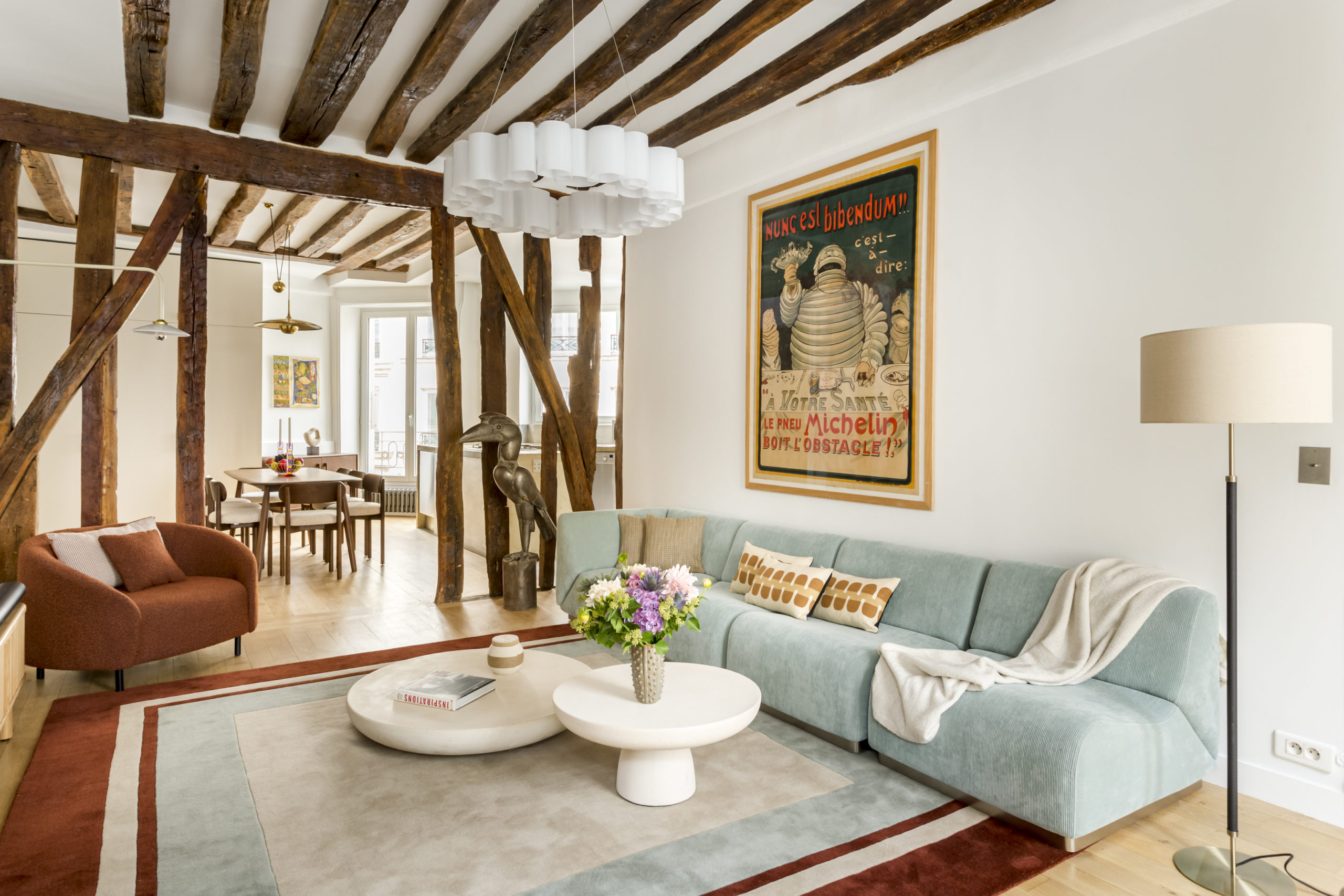 Le propriétaire a acheté ce bel écrin et voulait le meubler et lui donner une touche personnelle. Nous avons poncé les parquets, repeint tout l’appartement, réalisé un bureau-bibliothèque sur-mesure, posé du papier peint et meublé tout l’appartement. Un résultat à la fois élégant et intemporel avec de très belles références.